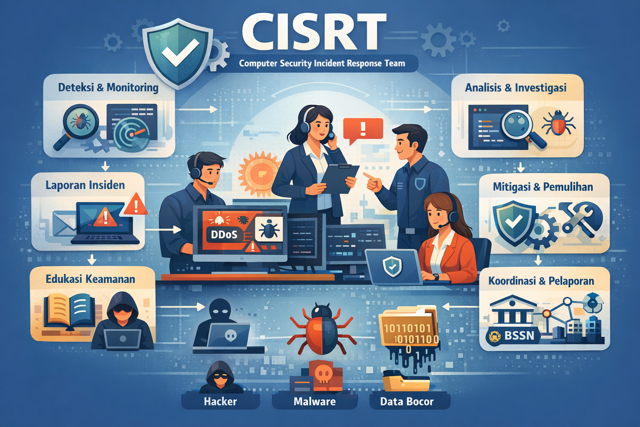 Peran utama CISRT adalah menangani berbagai jenis insiden keamanan, mulai dari peretasan website, serangan malware dan ransomware, kebocoran data, serangan Distributed Denial of Service (DDoS), hingga eksploitasi celah keamanan pada aplikasi dan infrastruktur jaringan. Selain menangani insiden yang sudah terjadi, CISRT juga bertugas melakukan pencegahan dengan memantau ancaman siber, mengelola kerentanan sistem, dan memberikan peringatan dini terhadap potensi serangan.