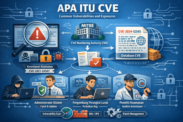 Dalam dunia keamanan siber, istilah CVE sering muncul ketika membahas kerentanan sistem, pembaruan keamanan, atau insiden peretasan. CVE merupakan singkatan dari Common Vulnerabilities and Exposures, yaitu sebuah sistem penomoran standar internasional yang digunakan untuk mengidentifikasi kerentanan (vulnerability) dan paparan keamanan (exposure) pada perangkat lunak maupun perangkat keras. Dengan adanya CVE, setiap celah keamanan memiliki identitas unik sehingga mudah dikenali, dilacak, dan dibahas secara global.