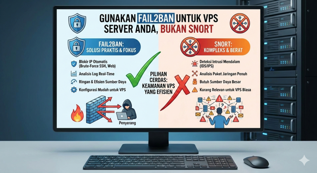 Untuk VPS server, Fail2Ban adalah pilihan yang lebih bijak dibandingkan Snort. Ringan, mudah dikonfigurasi, dan fokus pada ancaman nyata yang sering menyerang VPS. Snort memang kuat, tetapi kekuatan tersebut baru terasa optimal di lingkungan jaringan skala besar, bukan di VPS individual.